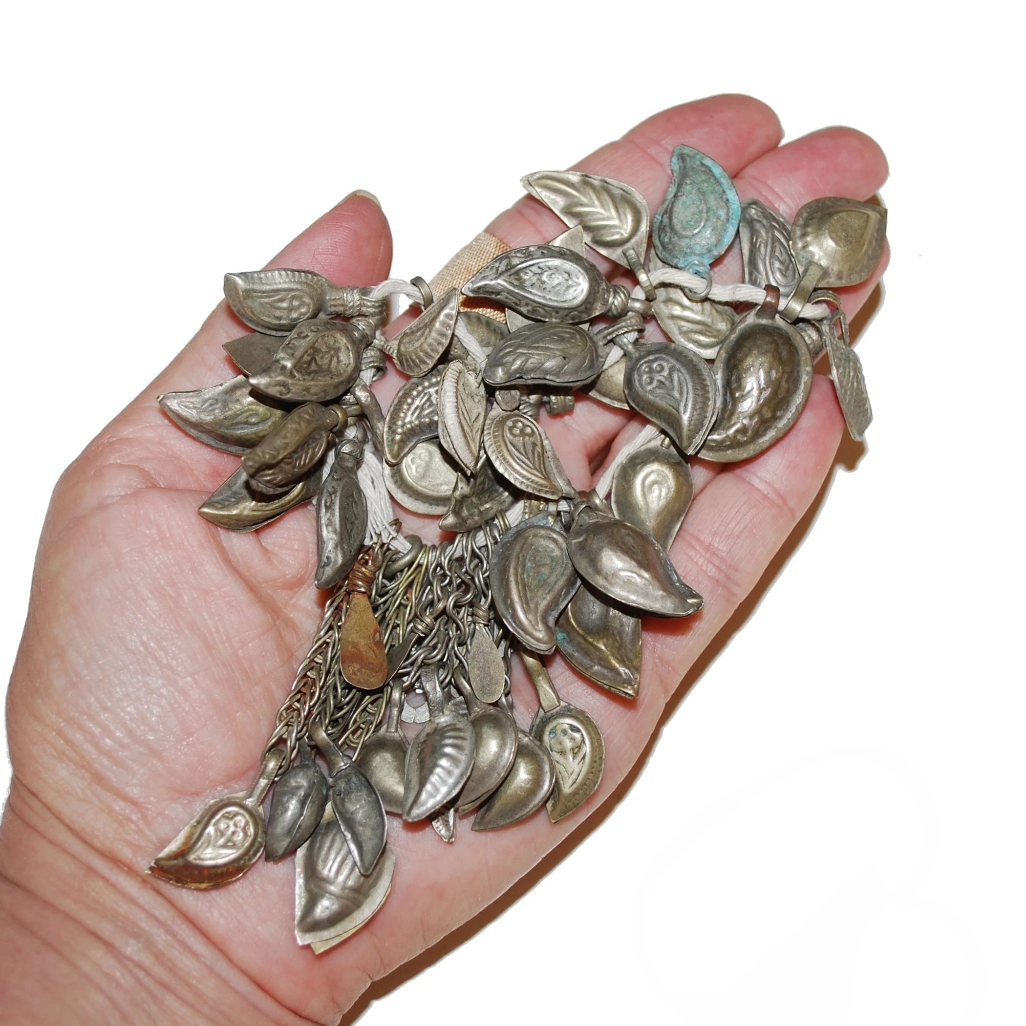 A NOTE ON THE CONDITION OF TRIBAL ITEMS: Our tribal components are used pieces from from faraway lands. As used pieces they may be tarnished or otherwise reflect their prior lives as treasured tribal pieces. Please know that we strive to maintain the tribal allure of our items and therefore we do not clean or repair these pieces in any way. This not only maintains the old, tribal look of each piece that our belly dance customers seek, but also preserves the value of a piece that cleaning, and especially polishing, might destroy.