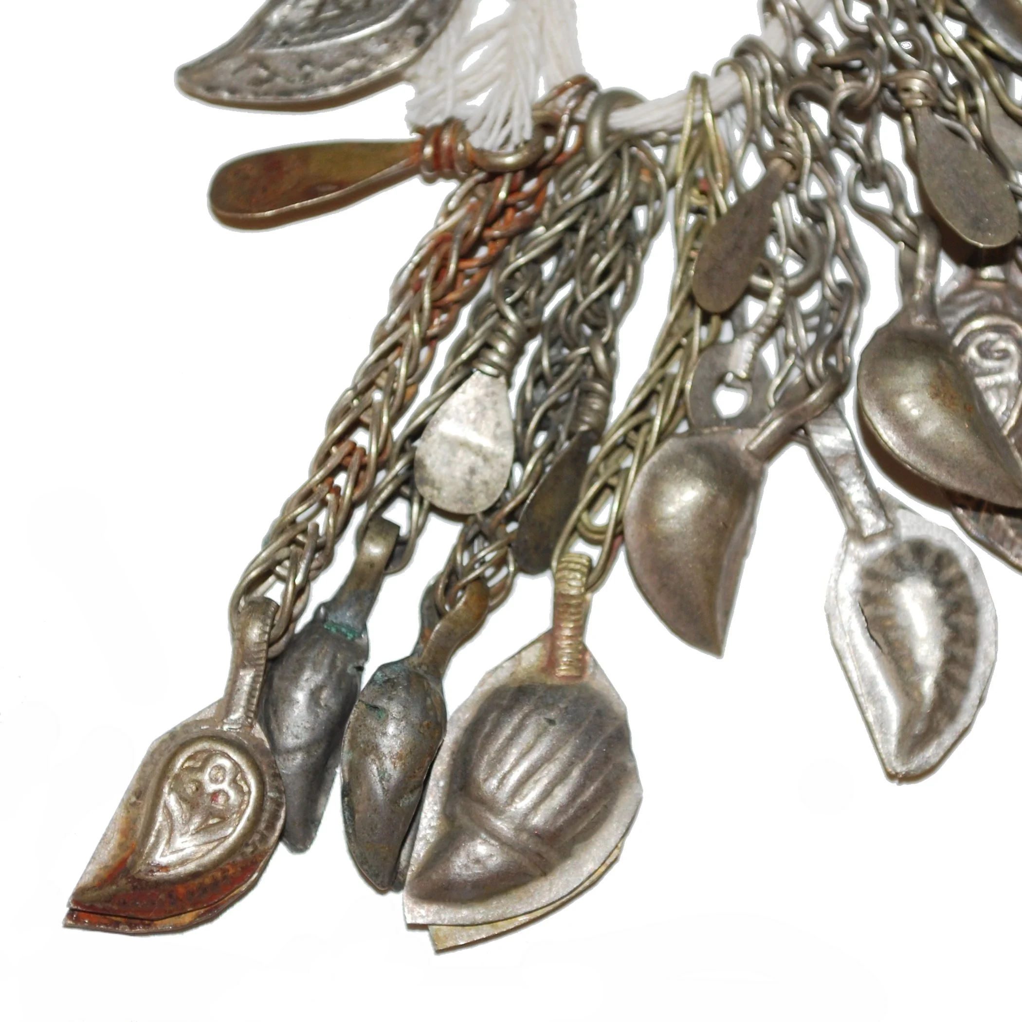 Add fantastic detailing to your costuming and accessory DIY projects with tribal chain fringe. Chain fringe comes in many different varieties, lengths, metal colors and finishes but always lends eye-catching sway to enhance your every movement. Vintage chain fringe is most often found in unpolished condition, and may be slightly imperfect. Missing dangles provide a unique opportunity to add your own embellishments! Any flaws will be noted in the specifications below.