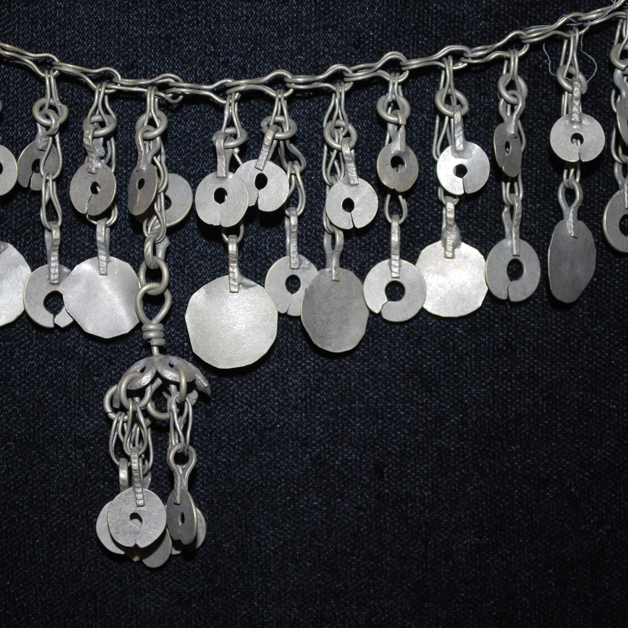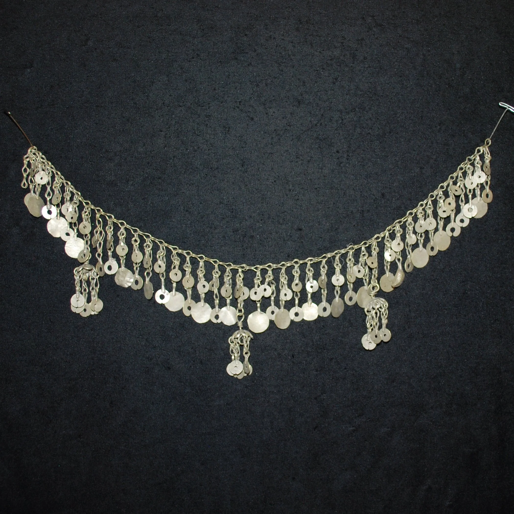 This is a USED piece of chain fringe that may have previously adorned tribal clothing, accessories, household goods, animal trappings or other items. As a previously used tribal item it may have small flaws such as missing or short dangles, misshapen links, missing pieces or other small flaws.